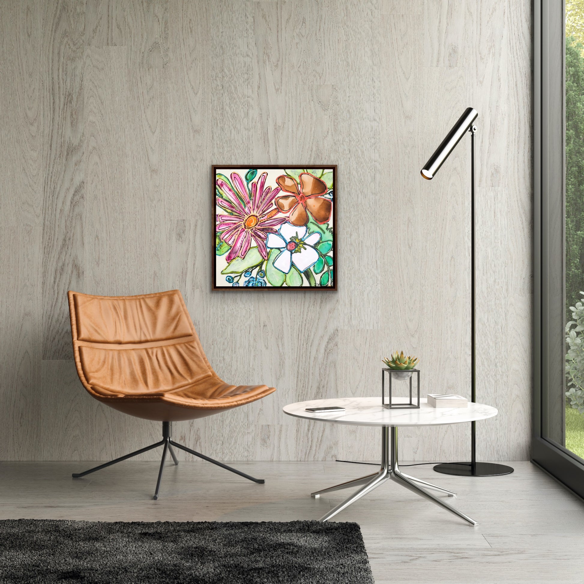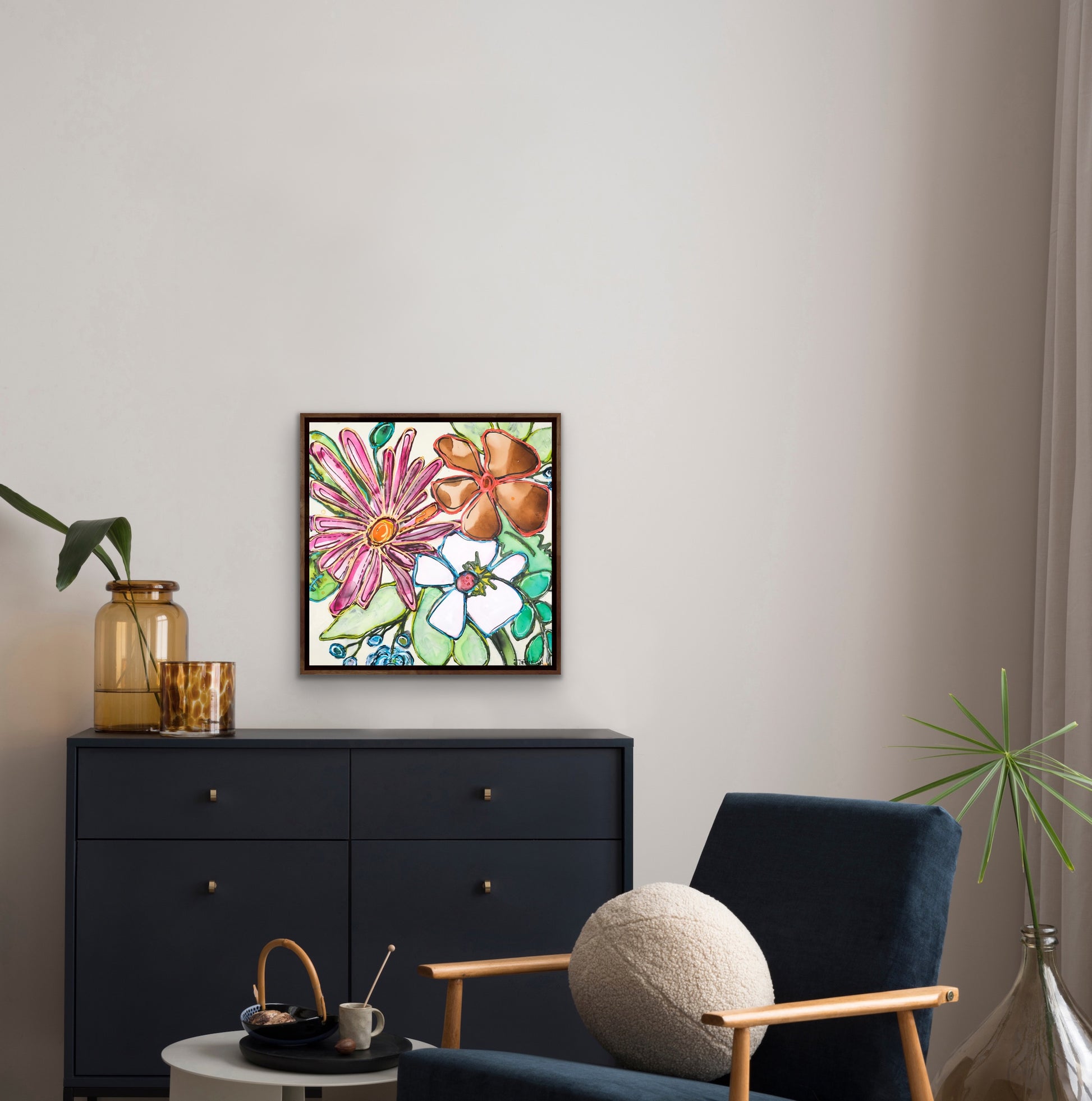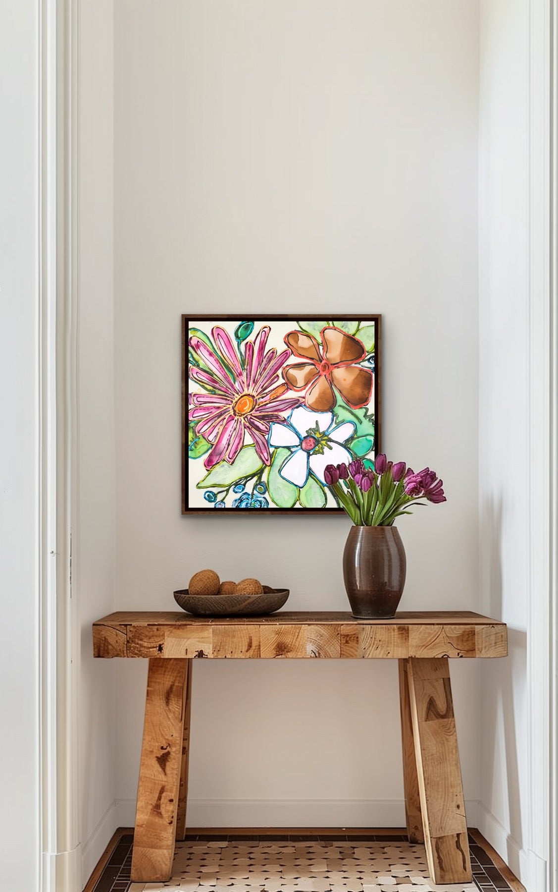 If you would like to see what this painting would look like on your wall you can send me a photograph of your living room, dining room, or wherever you would like to hang the painting and I can create a mock-up for you. Just ensure the photo has good light and is taken from a straight-on viewpoint. If you have any questions, please let me know, I'm happy to answer them.