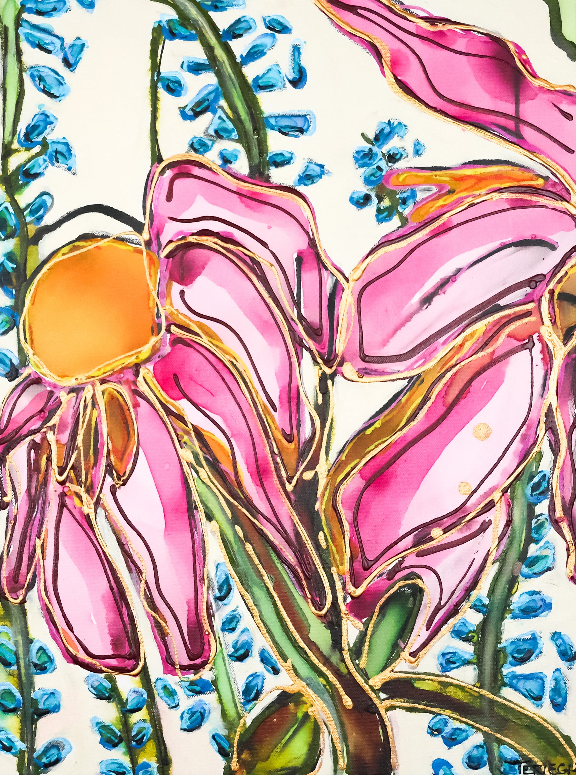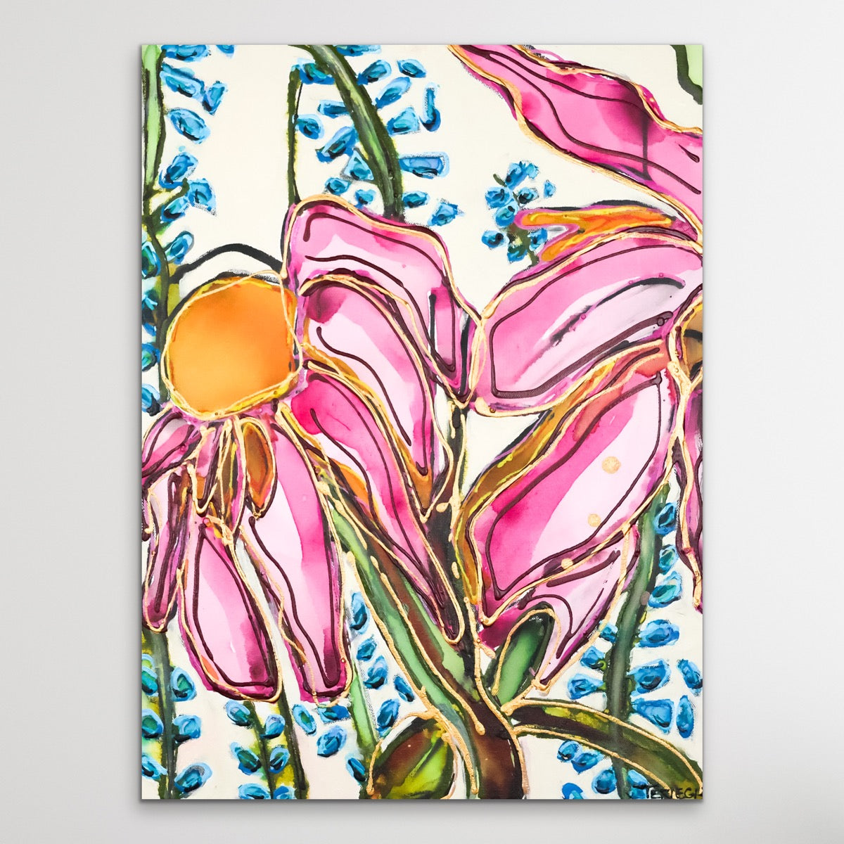 - Medium: Watercolor, Acrylic, and Alcohol Ink on canvas